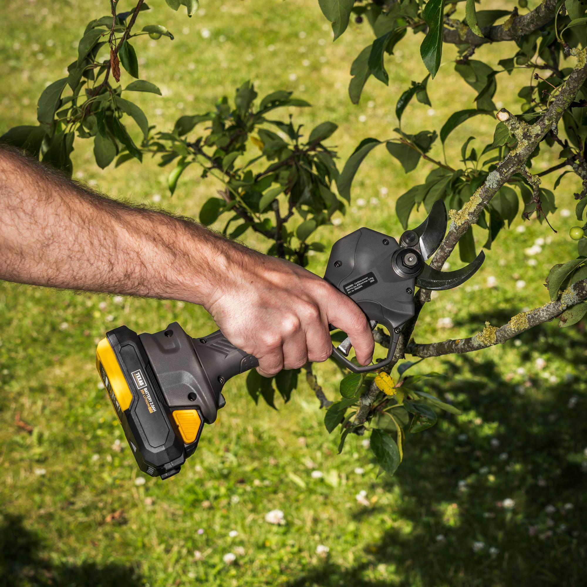 Say goodbye to sore fingers and laborious manual pruning with the Texas GSX2000 battery-powered pruner. Designed for ease and efficiency, this pruner is part of the versatile TEXAS 20V battery series, making your gardening tasks smoother and more enjoyable.