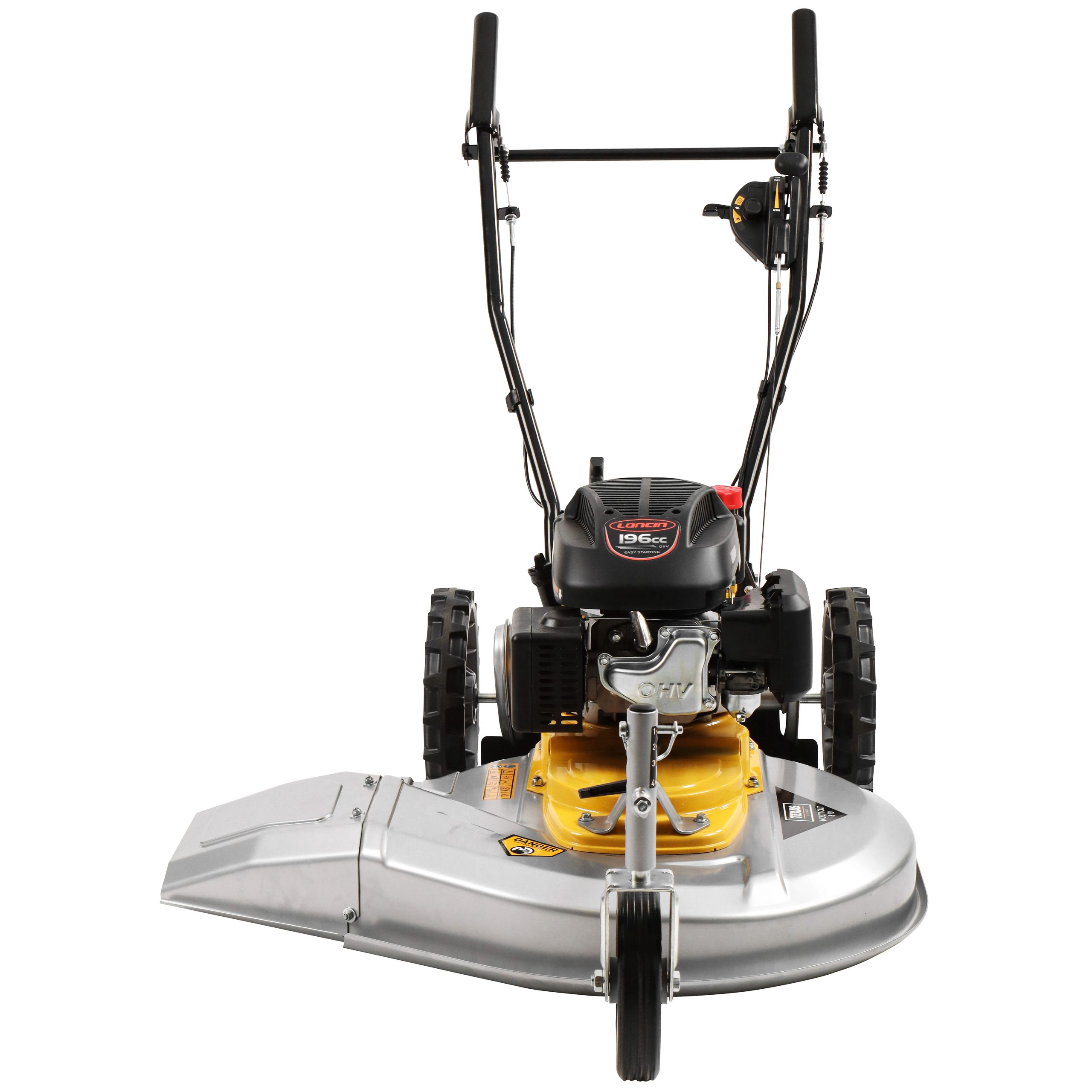 - Powerful Engine: Powered by a 196cc Loncin petrol engine, this mower delivers high performance and reliability, handling tough grass and challenging terrains effortlessly.
